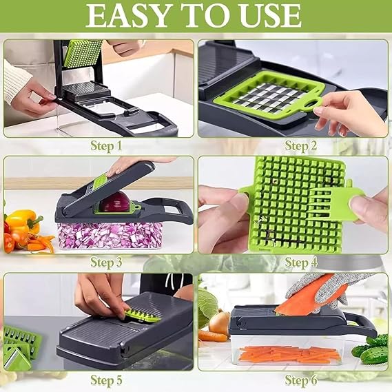 - With our manual multi-chopper, you will never have to resort to an electric variant again. With pulley mechanism, the onion cutter and vegetable chopper works particularly efficiently and quickly.